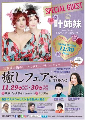 入場料:¥1000(リンク先の癒しフェアのサイトから事前登録で入場無料となります。ただし定数に達し次第終了となります)